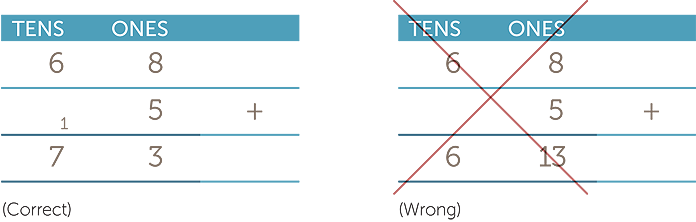 For example, a common error is to enter two digits into a single column when carrying out the addition algorithm.