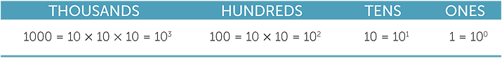When we work in base ten, the columns represent powers of ten. For example 7352 is shown as
