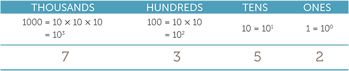 7352 = 7 × 1000 + 3 × 100 + 5 × 10 + 2